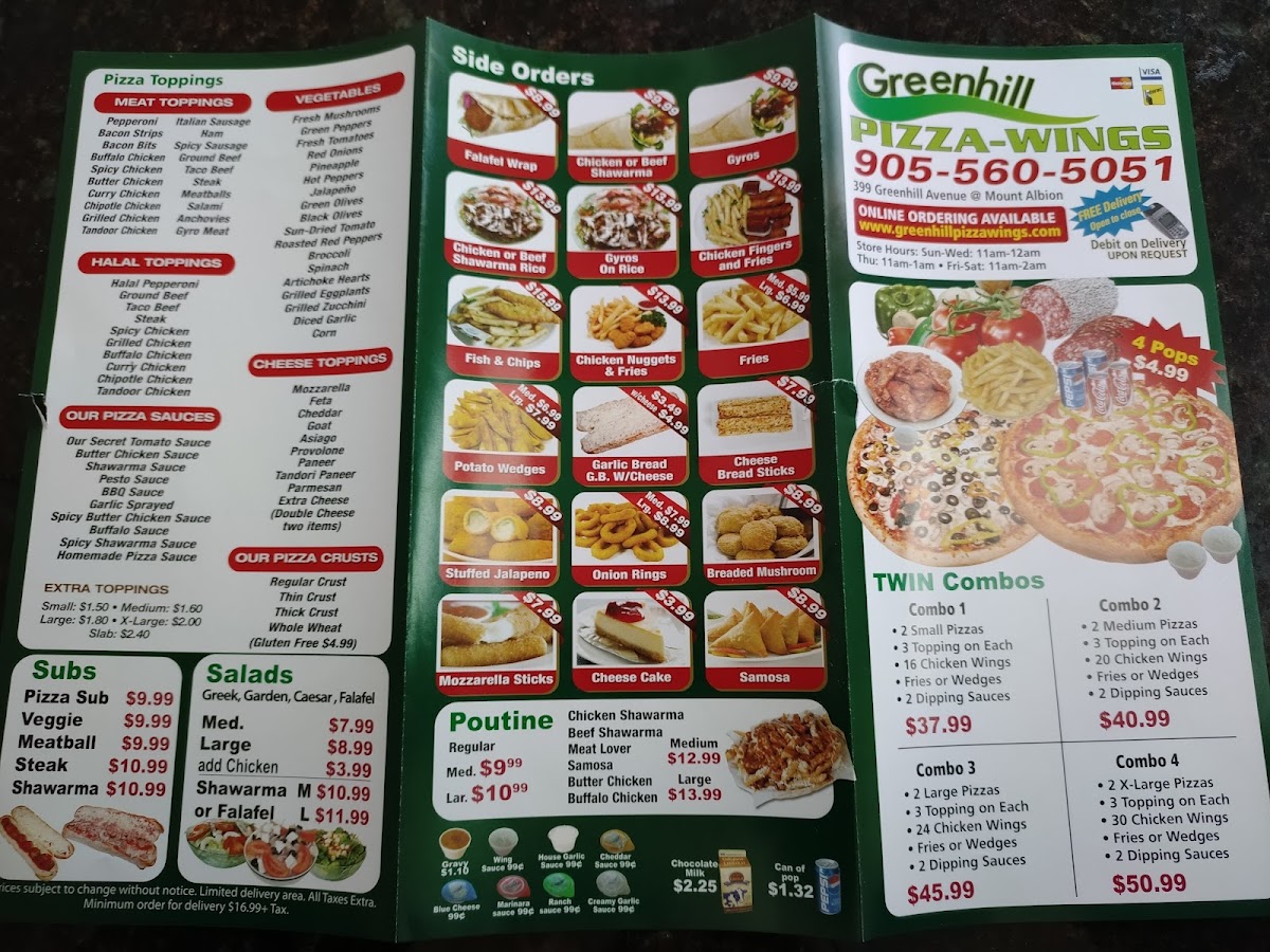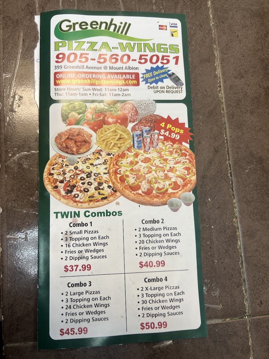 Welcome to Greenhill Pizza and Wings, a beloved local gem located at 399 Greenhill Ave, Hamilton, ON. This quaint pizza shop offers an enticing menu that blends quality with affordability, making it a go-to spot for both residents and visitors alike. With rave reviews from loyal customers like Jason O and Boogabah, it’s clear that the pizza here is made with care and tradition.